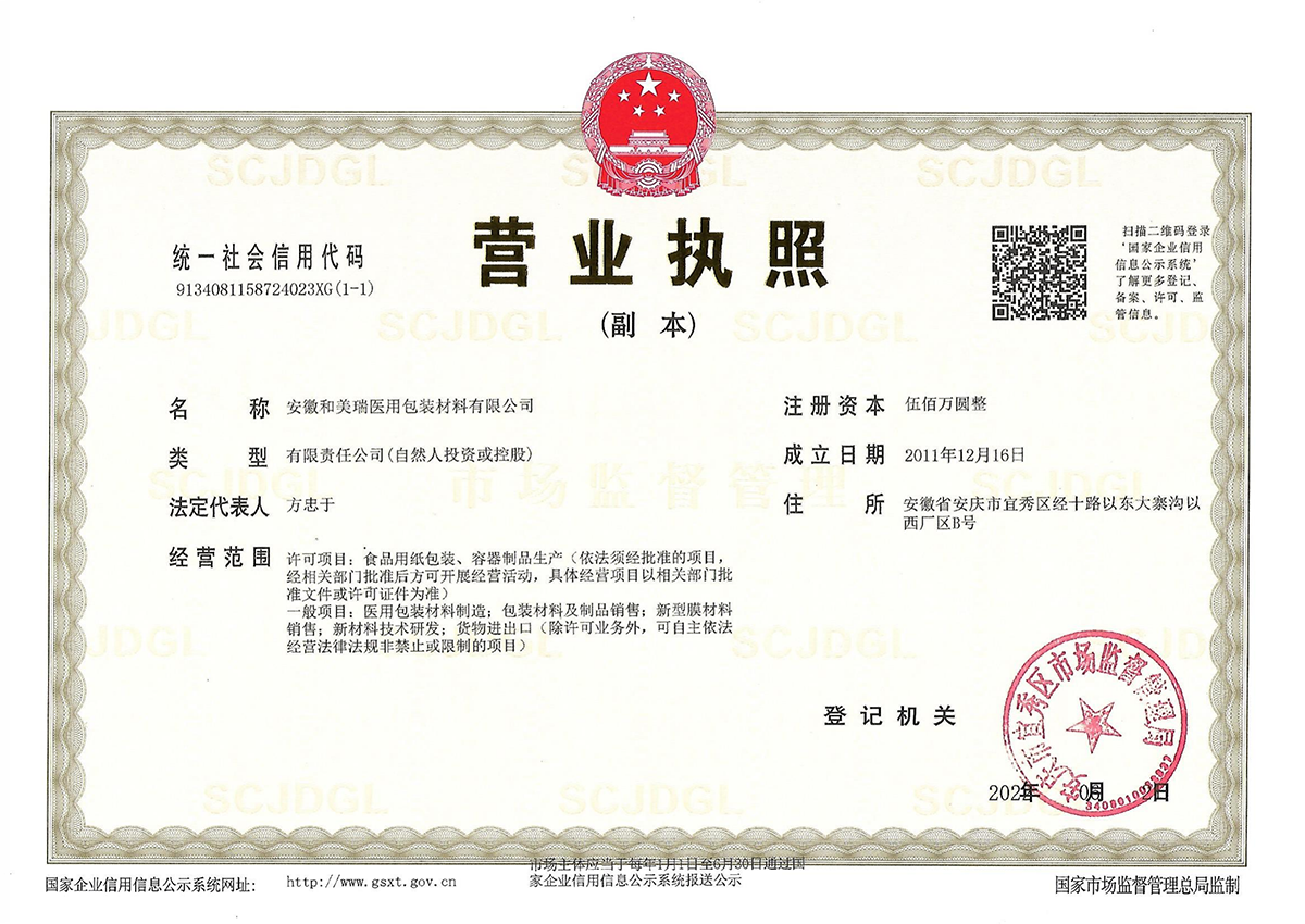 安徽和美瑞医用包装材料有限公司,成立于2011年12月,是医疗器械工厂包装,医院用灭菌监测指示剂以及医院灭菌包材的生产厂家。产品已出口欧、美、亚、拉等多个国家和地区,得到了客户的肯定和认可,并保持了长期的良好合作。